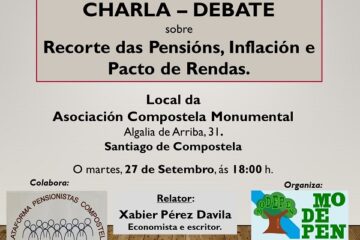 Santiago de Compostela: Charla-Debate: Recorte das Pensións, Inflación e Pacto de Rendas. 20 Setembro, 2022 modepen AXENDA