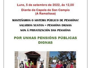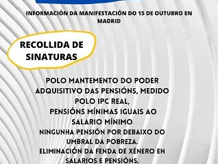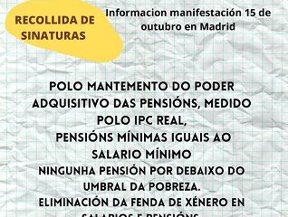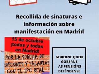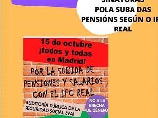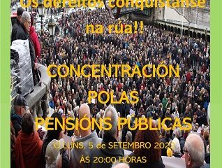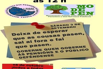 Ante esta situación MODEPEN( Movemento Galego en defensa das Pensión e Servicios Sociais públicos) saimos a rúa e facemos un chamamento a tódala cidadanía para defender unhas pensións públicas, e unhas condicións de traballo dignas.