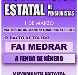 O día 1 de marzo, terán lugar mobilización de pensionistas na Capela da Ramallosa, no Val Miñor. As mobilizacións están convocadas polo Movemento Estatal de Pensionistas (MEP), onde conflúen máis do 90% das plataformas de pensionistas do Reino de España.