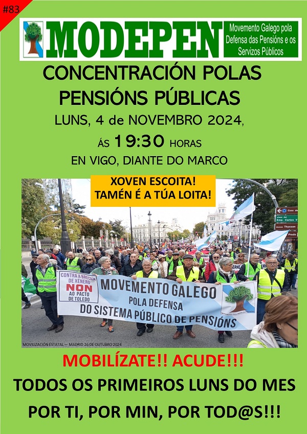 • Intervención do 21 de febreiro de 2026 realizada por Xabier Pérez Davila ao remate da manifestación convocada por MODEPEN en defensa da suba anual das pensións e do Decreto-lei do escudo social.